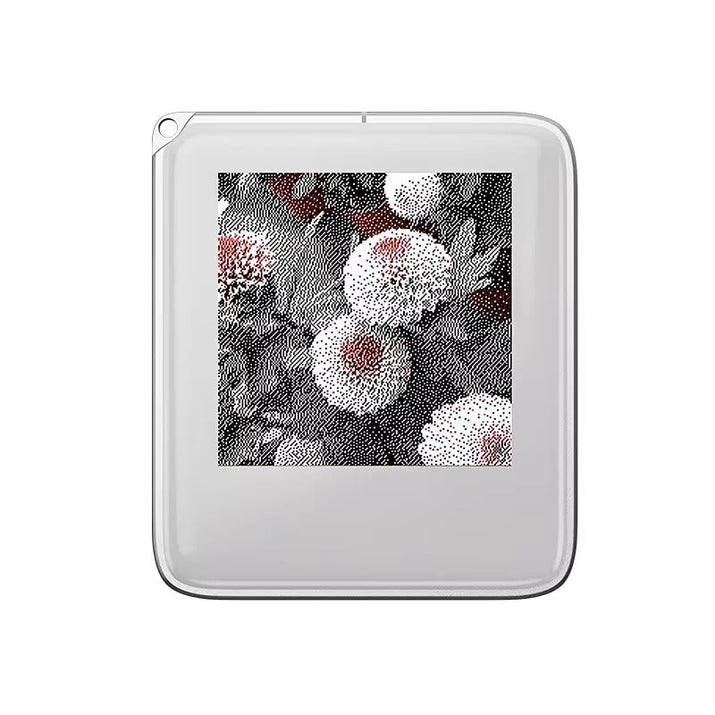 Answer 1: The keychain features an embedded NFC chip that allows you to store and display information like contacts, URLs, and quick messages. Its compact design makes it portable, and the customizable display can showcase various content for easy sharing.